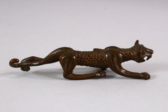 A JAPANESE BRONZE MODEL OF A LEOPARD - in a striding pose - 11cm