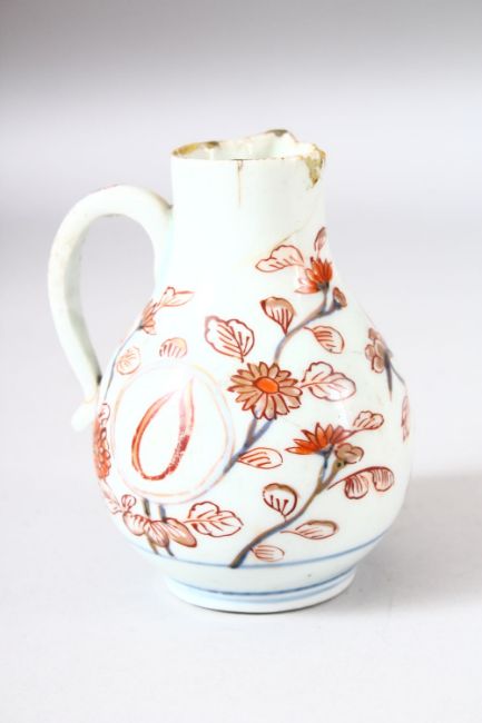 A JAPANESE ARITA PORCELAIN OIL JUG / EWER, painted with flowers, 12cm high.
