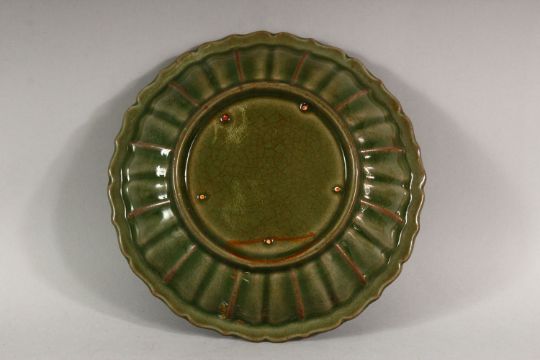 A CHINESE GREEN GLAZED RIBBED BOWL, 19.5cm diameter.