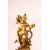 A SMALL INDIAN GILT BRONZE FIGURE, holding an item in its right hand, standing on a naturalistic base, 8cm high.