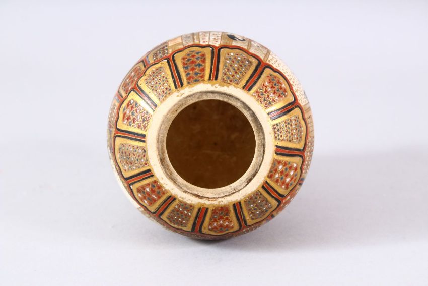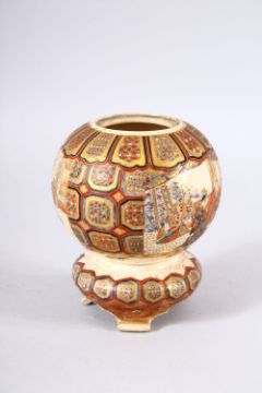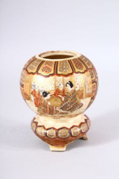 A JAPANESE MEIJI PERIOD SATSUMA KORO - the body decorated with panels of figures and geometric designs, 13cm