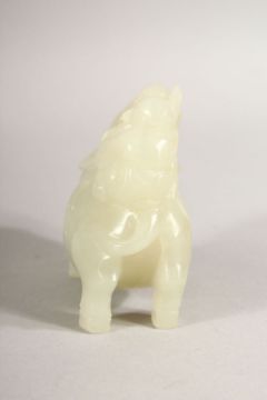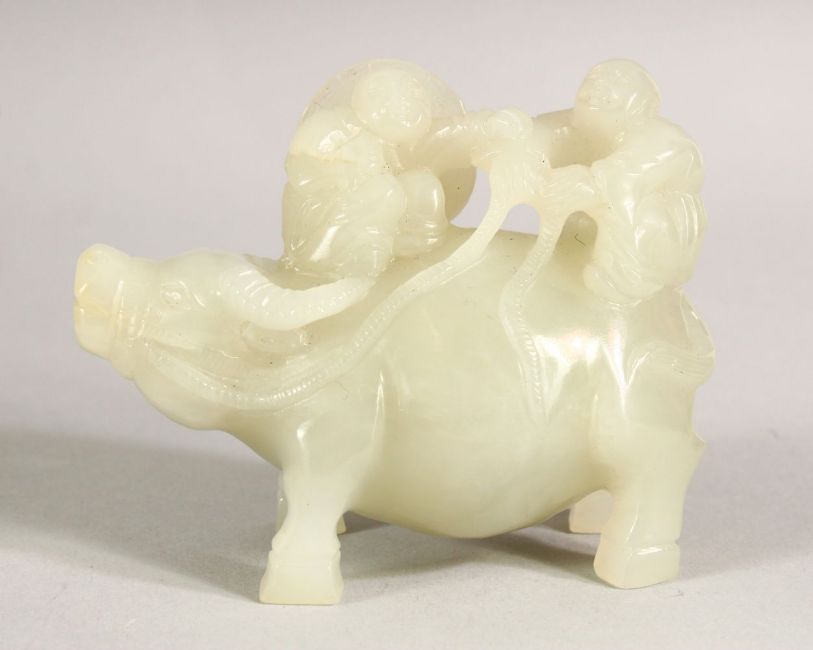 A CARVED WHITE JADE FIGURE riding a buffalo, 9cm long.