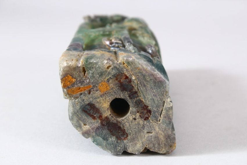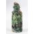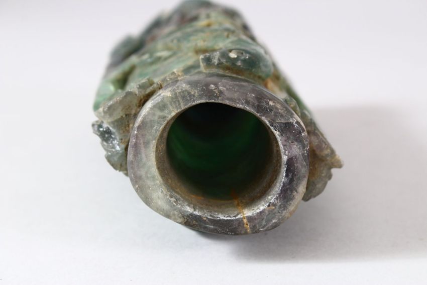 A CHINESE CARVED GREEN HARD STONE LIDDED VESSEL - carved with scenes of birds, 22.5cm