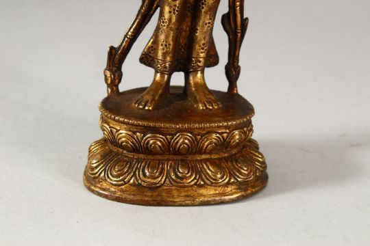 A SINO - TIBETAN GILT BRONZE FIGURE OF BUDDHA / DEITY - 18.5CM