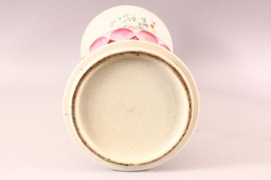 A GOOD TALL CHINESE FAMILLE ROSE GU SHAPE VASE, painted with flowers and birds, with bulbous central section formed as petals / scales, 49cm high.