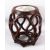 A CHINESE CARVED HARDWOOD BARREl TABLE WITH PORCELAIN FAMILLE ROSE INSET PANEL - the carved open rope style barrel formed table inset with a famille rose porcelain plaque to the top depicting birds and flora. 45.5cm high x 40cm diameter
