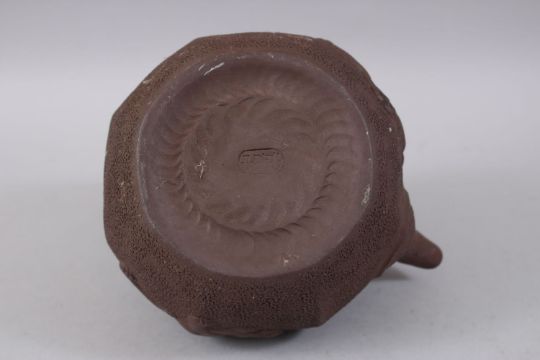 A JAPANESE MEIJI PERIOD MOULDED CLAY / YIXING STYLE DRAGON TEAPOT / KETTLE, the body with nanako style ground with two moulded dragons, the handle formed from wicker, 21cm high x 19cm wide.