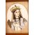 A 19TH CENTURY INDIAN IVORY SLITHER PAINTING OF A FEMALE - the female with head dress and gowns, framed in gilt mounted frame, 13,5cm x 12cm