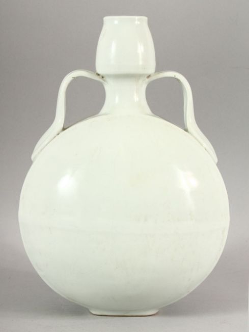 A CHINESE BLANC DE CHINE TWIN HANDLE MOONFLASK, with curving handles, 33cm high, 22cm diameter.