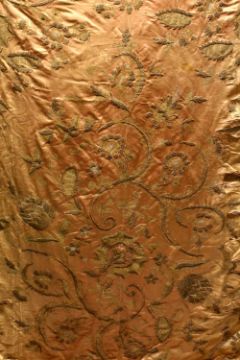 A LARGE 18TH CENTURY OTTOMAN EMBROIDERED TEXTILE, with embroidered decoration of floral design, with decorated borders.