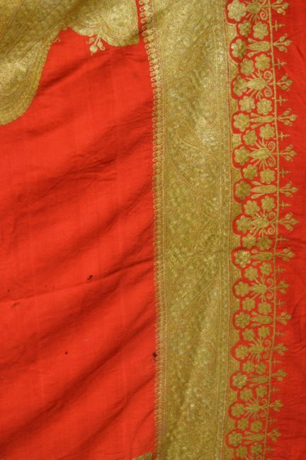 A GOOD 18TH CENTURY INDIAN GOLD EMBROIDERED TEXTILE - Embroidered with gold coloured thread in typical Indian taste.