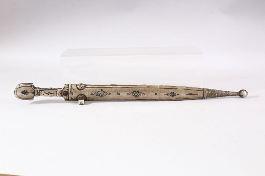 A 19TH CENTURY KINDJAL DAGGER and scabbard, 49cm long.