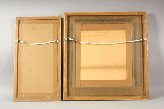 H.J. JOHNSON RI; AN INK SKETCH MONTAGE with depictions of Japanese scenes, pencil signed, image 28cm x 27cm, together with a watercolour of figures and buildings - mount fuji in the distance, image 26.5cm x 9.5cm.