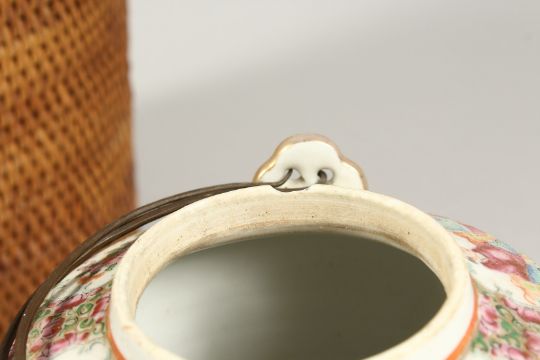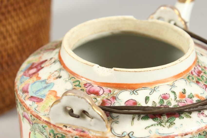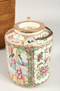 A CANTON TEA POT in a basket