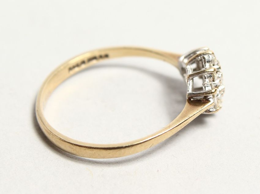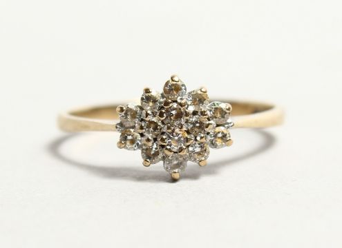 A 18CT GOLD AND DIAMOND CLUSTER RING.