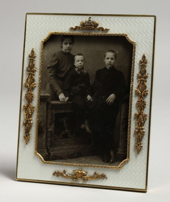 A VERY GOOD RUSSIAN SILVER AND ENAMEL PHOTOGRAPH FRAME.