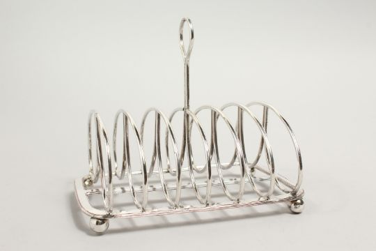 A MATTHEW BOULTON OLD SHEFFIELD PLATE, SIX DIVISION TOAST RACK, of scrolling design, impressed marks to base.