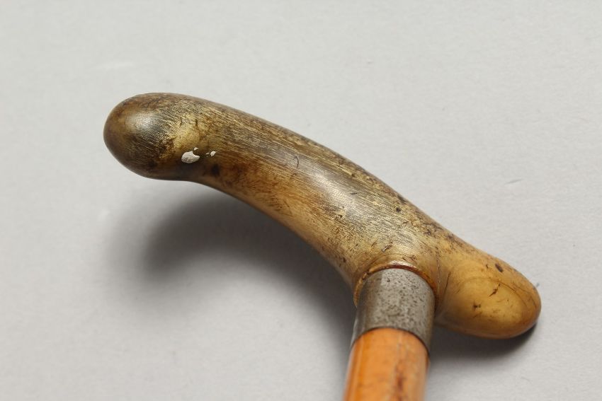 A CANE WITH RHINO HANDLE