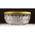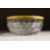 A CUT GLASS CIRCULAR BOWL with silver and yellow enamel rim