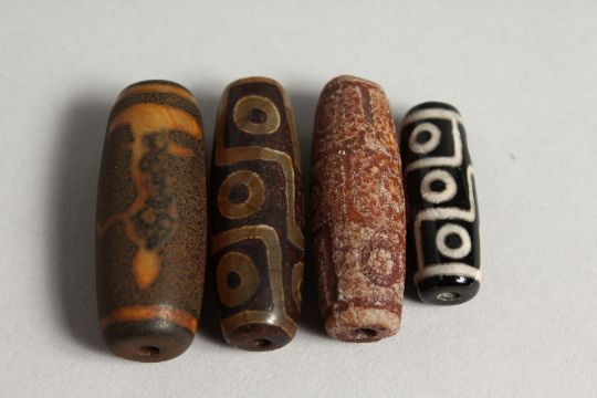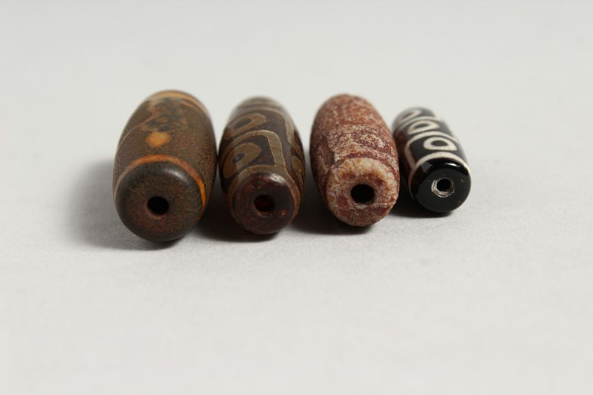 FOUR SMALL AGATE ZHI BEADS