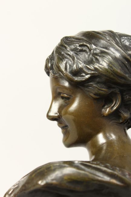 A BRONZE BUST OF A YOUNG BOY, signed on a square base