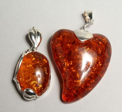 TWO SILVER AND AMBER PENDANTS