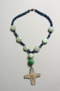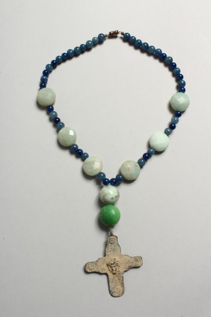 A SMALL ROMAN IRON CROSS AND BEADS