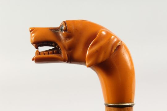 A DOG'S HEAD WALKING STICK.