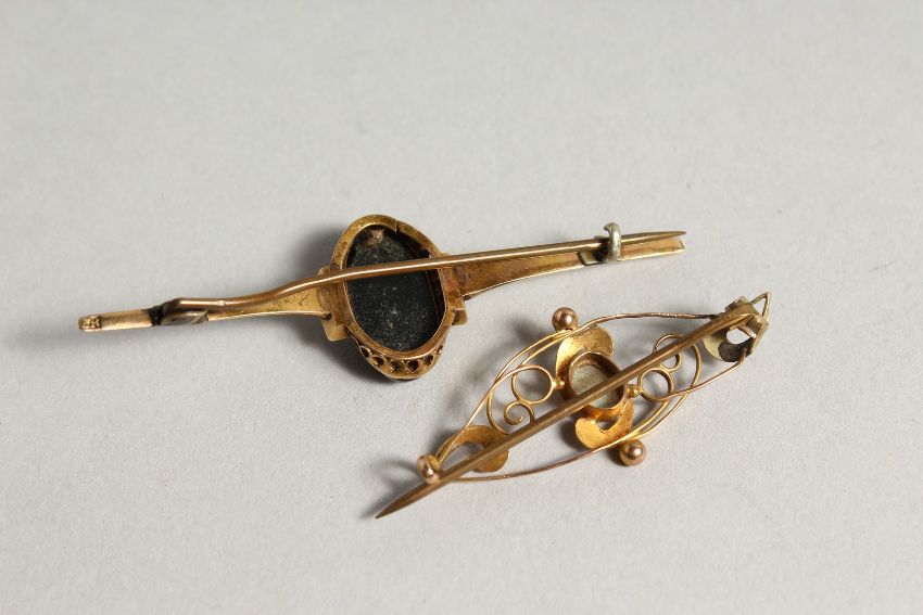 TWO GOLD EDWARDIAN BAR BROOCHES.