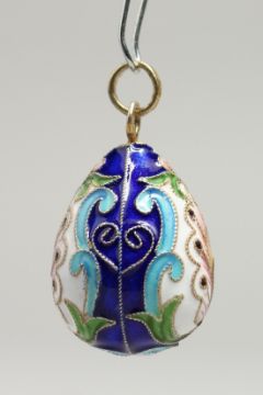 A SMALL RUSSIAN SILVER AND ENAMEL EGG PENDANT