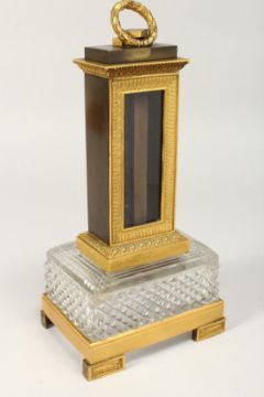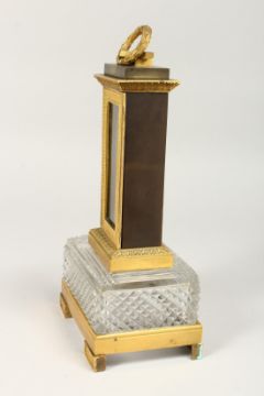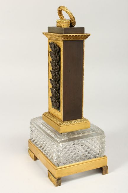 A RARE 19TH CENTURY FRENCH CRYSTAL, ORMOLU AND BRONZE DATE COLUMN