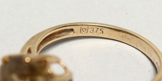A TOPAZ RING with diamond shoulders