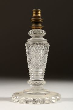 A HOBNAIL CUT GLASS LAMP BASE