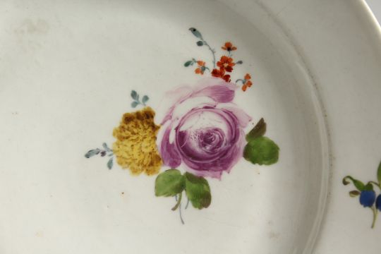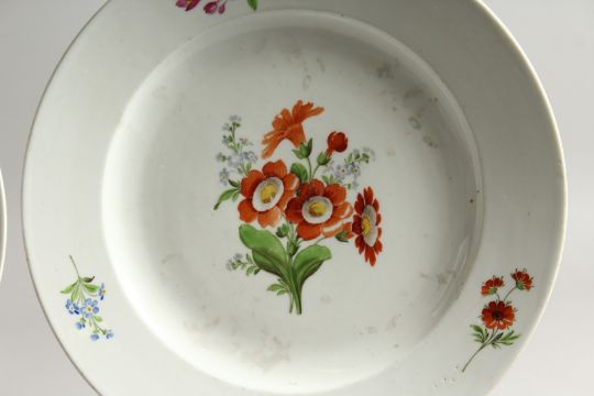 TWO 19TH CENTURY MEISSEN CIRCULAR PLATES painted with flowers