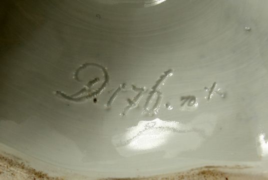 Cross swords mark in blue, 18ins high.