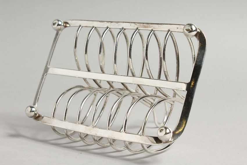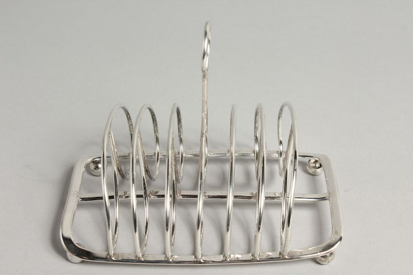 MATTHEW BOULTON. A SILVER SIX DIVISION TOAST RACK, of typical scrolling design on ball feet.