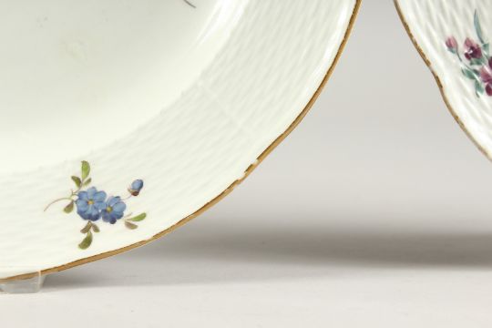 A SET OF THREE 19TH CENTURY MEISSEN CIRCULAR PLATES painted with flowers.