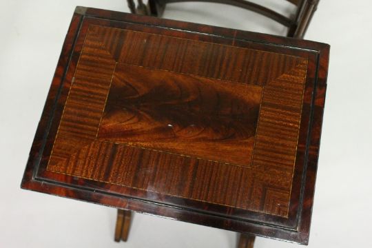 A GOOD MAHOGANY QUARTETTO, each with an inlaid rectangular panel with cross banded and inlaid decoration.