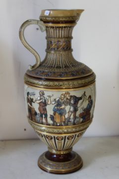 A GOOD LARGE METTLACH POTTERY EWER.