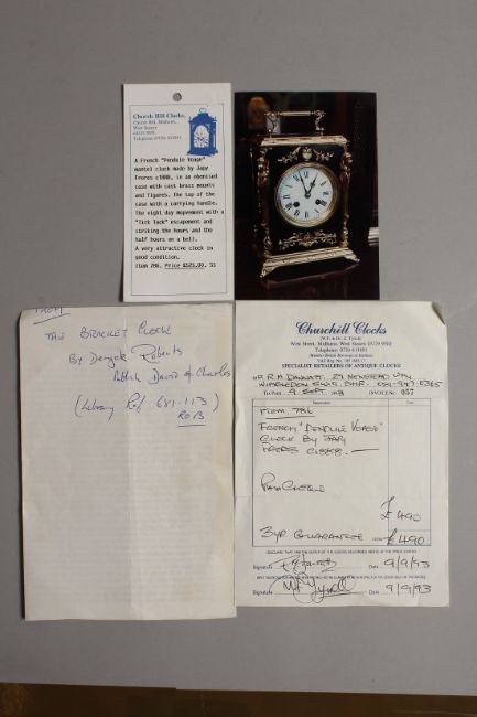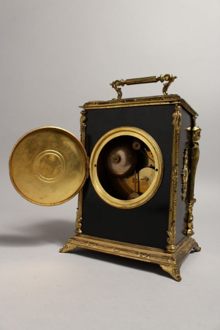 A FRENCH "PENDULE VOYAGE" MANTLE CLOCK by JAPY FRERES. C 1880 with 'tick tack' escapement, strikes on the hour on bell.