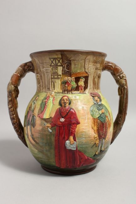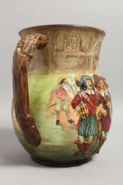 A ROYAL DOULTON LARGE LIMITED EDITION LOVING CUP, designed by Charles Noke, modelled as The Three Musketeers, The Great Romance of Louis XIII's Reign, No. 109/600.