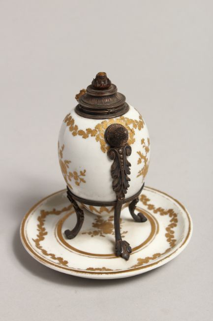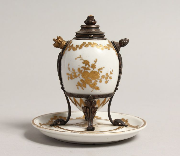 A 19TH CENTURY SEVRES PORCELAIN AND METAL BEAKER