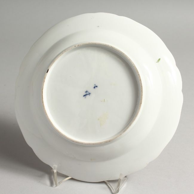 A 19TH CENTURY MEISSEN CIRCULAR PLATE with waved border and painted with flowers.