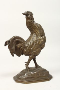 A BRONZE STANDING COCKERAL on an octagonal base