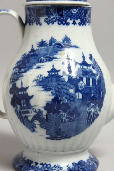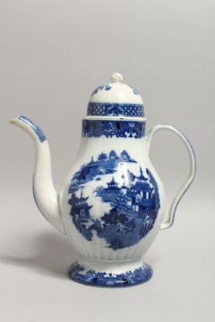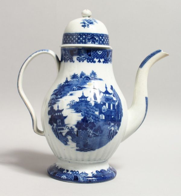 A 19TH CENTURY PORCELAIN COFFEE POT, painted in the chinese style (cover possible associated).