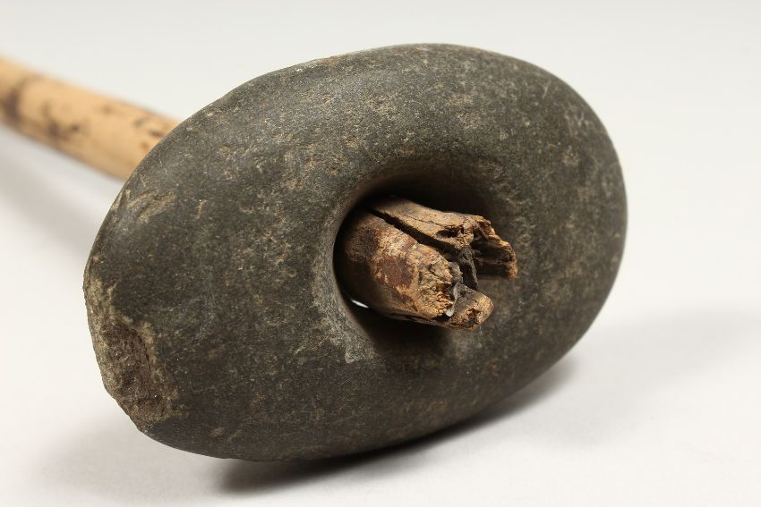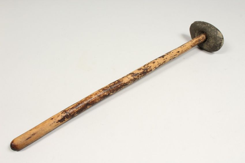 A CLUB WITH STONE HEAD