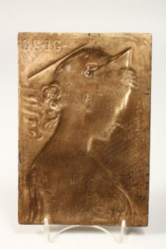 A GILDED RELIEF CAST BRONZE PLAQUE of a portrait of a classical young lady