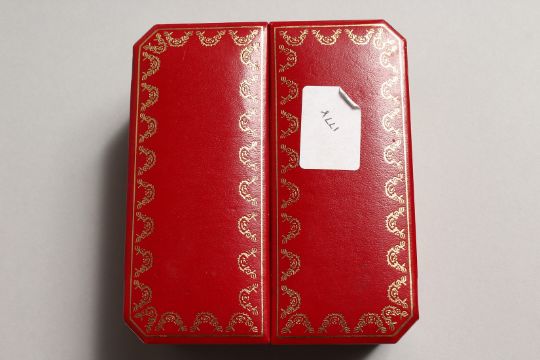 A VERY GOOD CARTIER PARIS TRAVELLING CLOCK in a red Cartier case, No. 750503920.