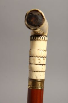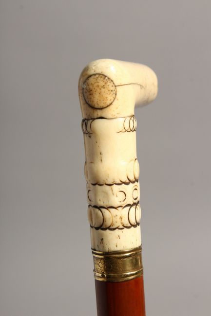 A 19TH CENTURY ALPINE HORN WALKING STICK