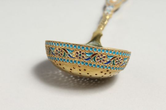 A RUSSIAN SILVER GILT SIFTER SPOON